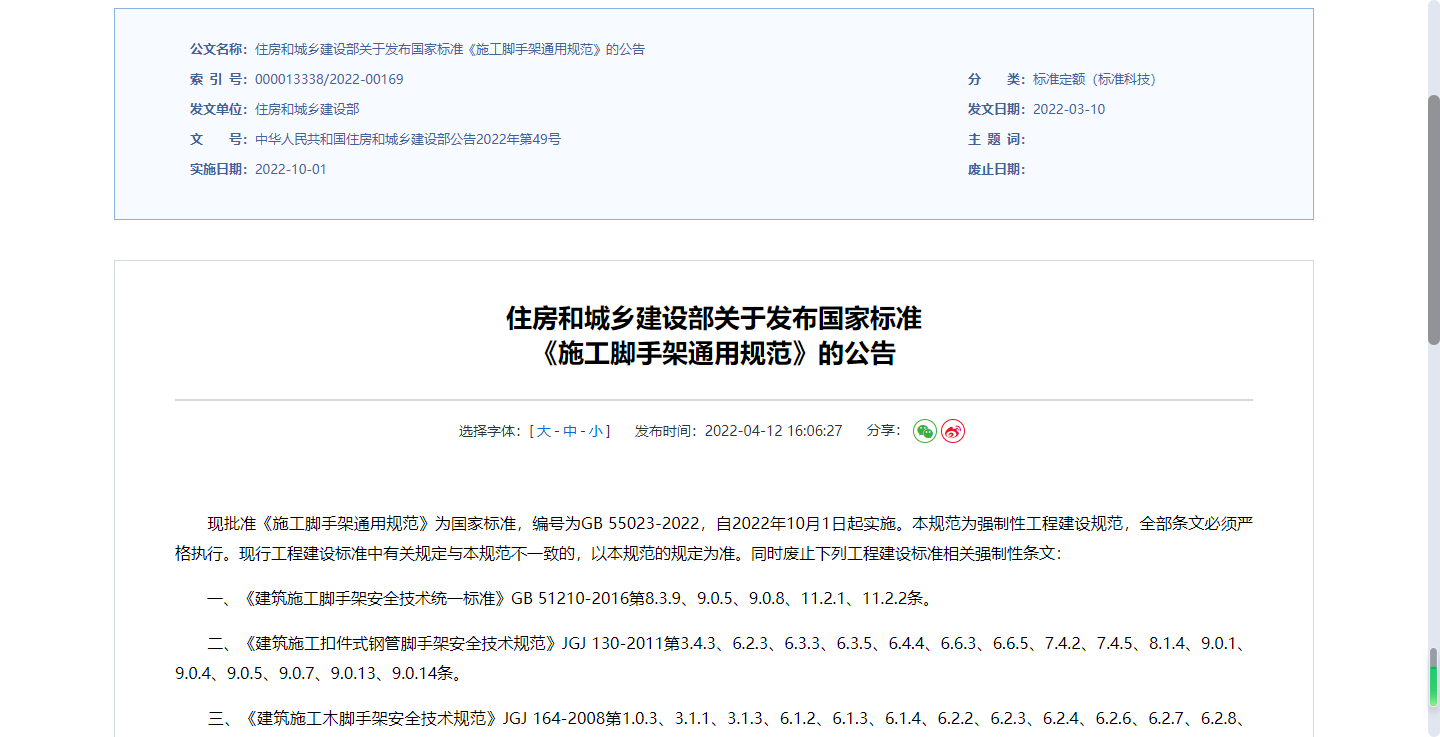 规范文件下载:《GB 55023-2022 施工脚手架通用规范》.pdf