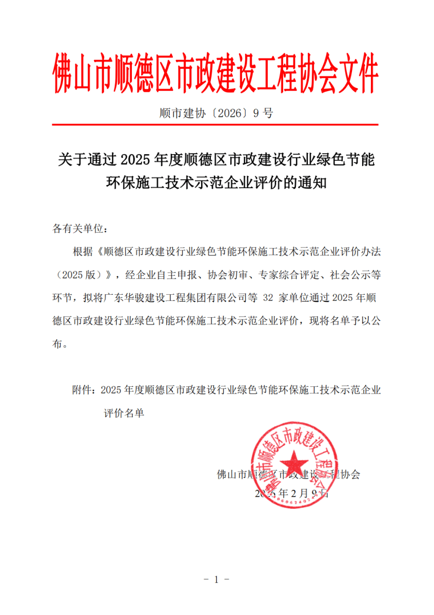 顺市建协〔2026〕9号 关于通过2025年度顺德区市政建设行业绿色节能环保施工技术示范企业评价的通知.pdf