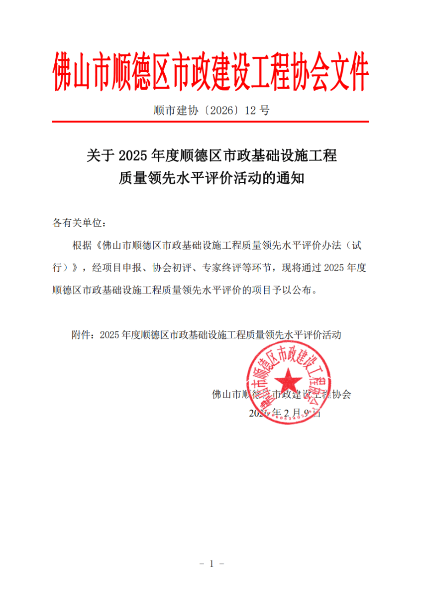 顺市建协〔2026〕12号 关于2025年度顺德区市政基础设施工程质量领先水平评价活动的通知.pdf