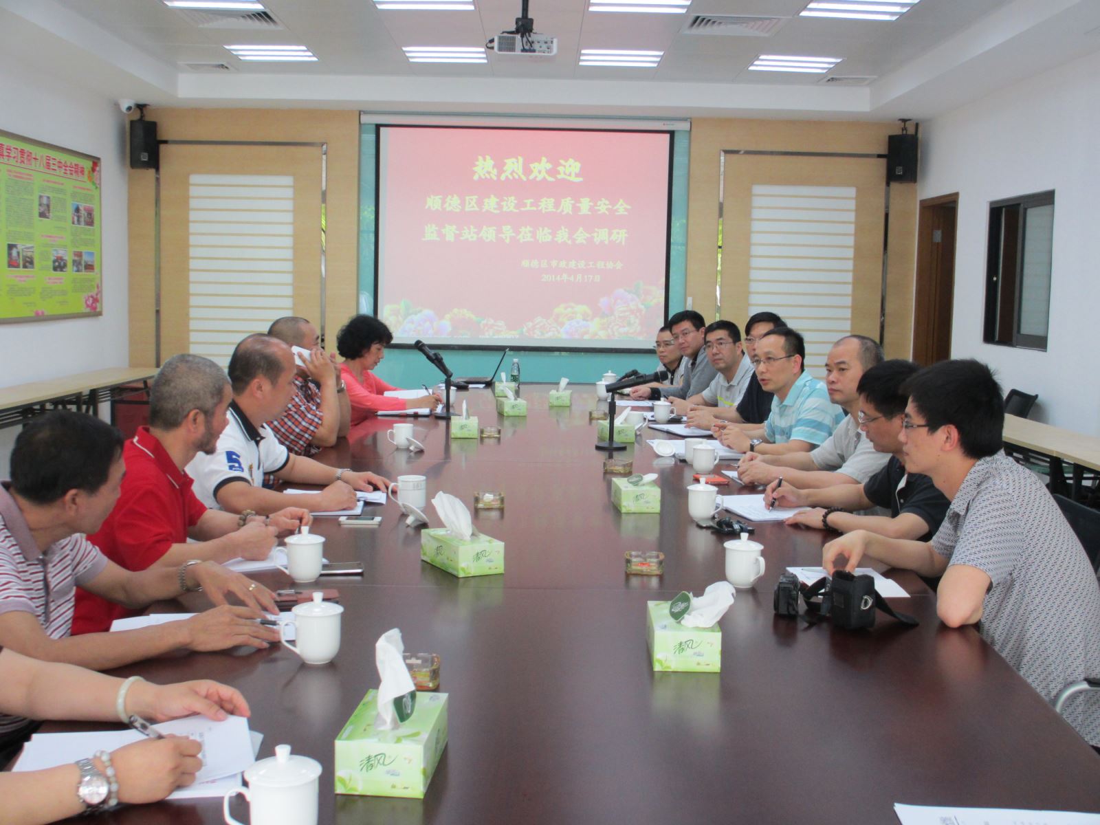 根据党的群众路线教育实践活动“照镜子、正衣冠、洗洗澡、治治病”的总要求,4月17日,区建设工程质量监督站调研组一行九人到我会开展党的群众路线教育实践活动,协会会长黄锦联、执行会长黄伟华、常务副会长陈友坤、副会长杜伟雄等出席了会议。