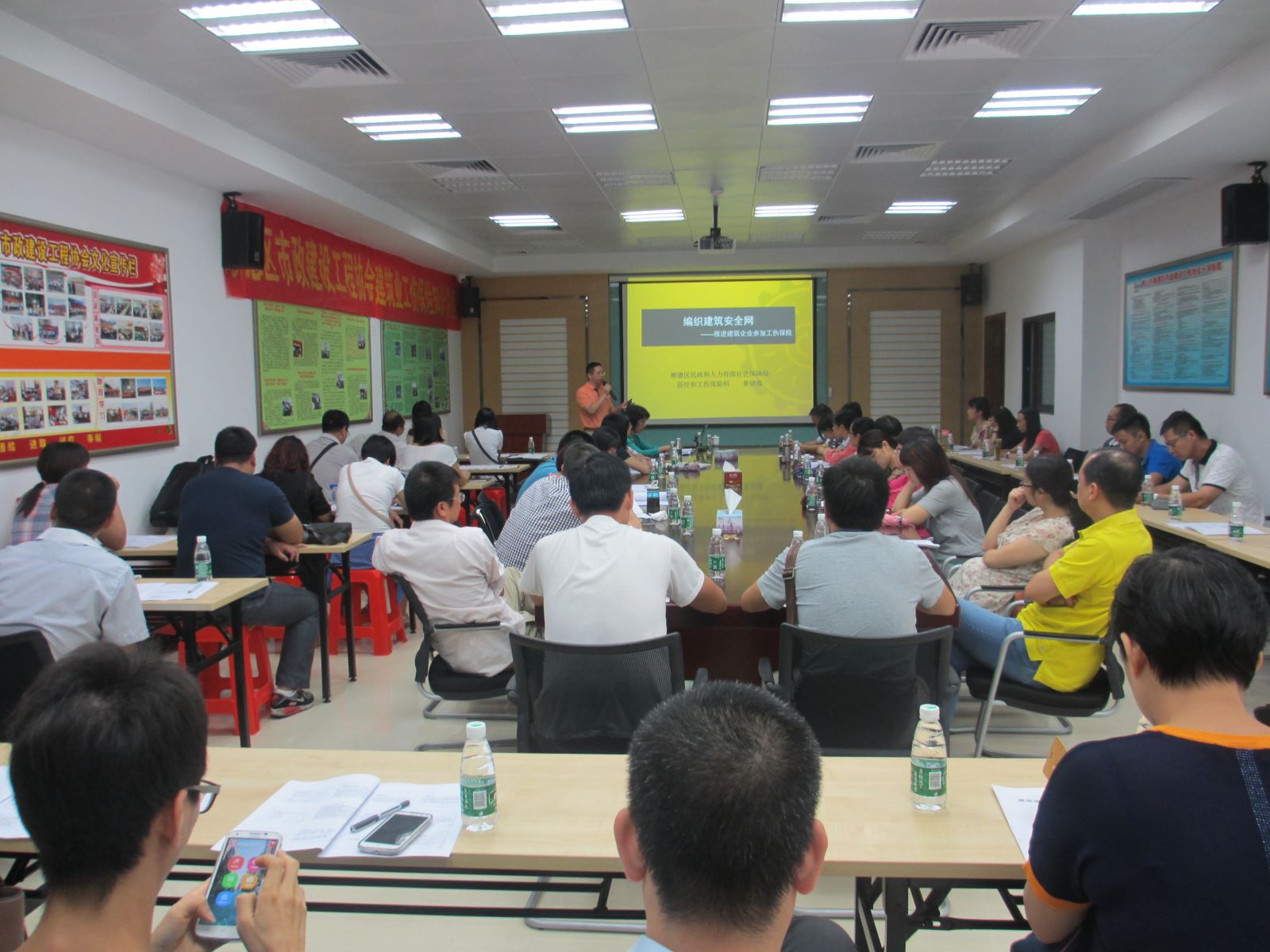 根据广东省人力资源和社会保障厅、广东省住房和城乡建设厅、广东省地方税务局、广东省安全生产监督管理局、广东省总工会《关于进一步做好我省建筑业工伤保险工作的实施意见》和广东省政府拟出台的《广东省安全生产责任保险实施办法》,9月2日,市政建设工程协会举办建筑业工伤保险知识讲座,诚邀区民政和人力资源社会保障局医疗和工伤保险科科长黄健成主讲,房建、市政施工等企业安全负责人等60多人参加培训。