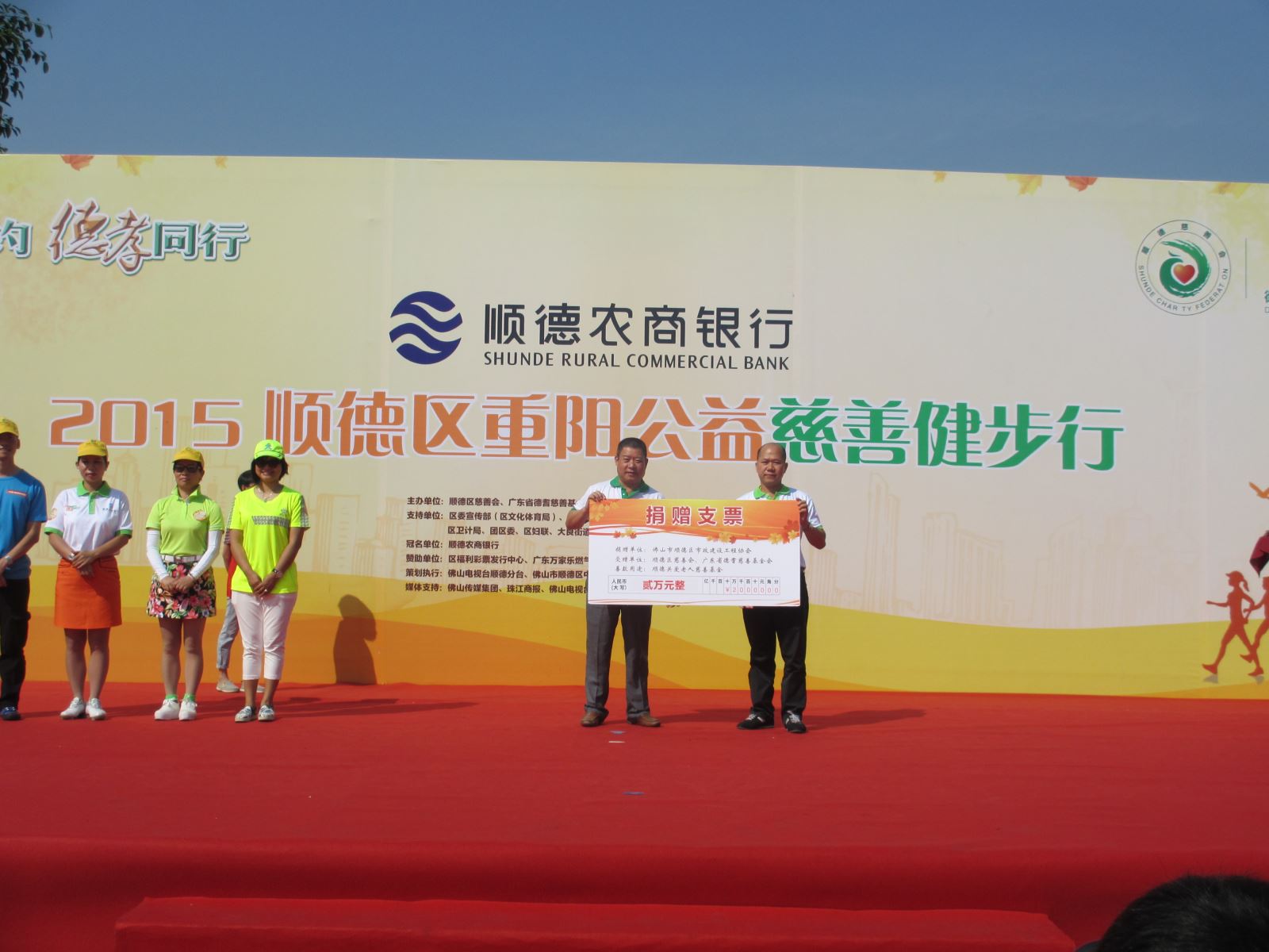 金秋十月爽,九九话重阳。为弘扬中华民族尊老、爱老、敬老、助老的传统美德,营造关爱老人,引导社会关注、关心顺德养老事业发展的良好氛围。10月18日,协会积极参与由顺德区慈善会、广东省德耆慈善基金会主办的“顺德区2015年顺德重阳公益慈善健步行活动”,为“顺德关爱老人慈善基金”捐献2万元善款,并参与慈善健步行。