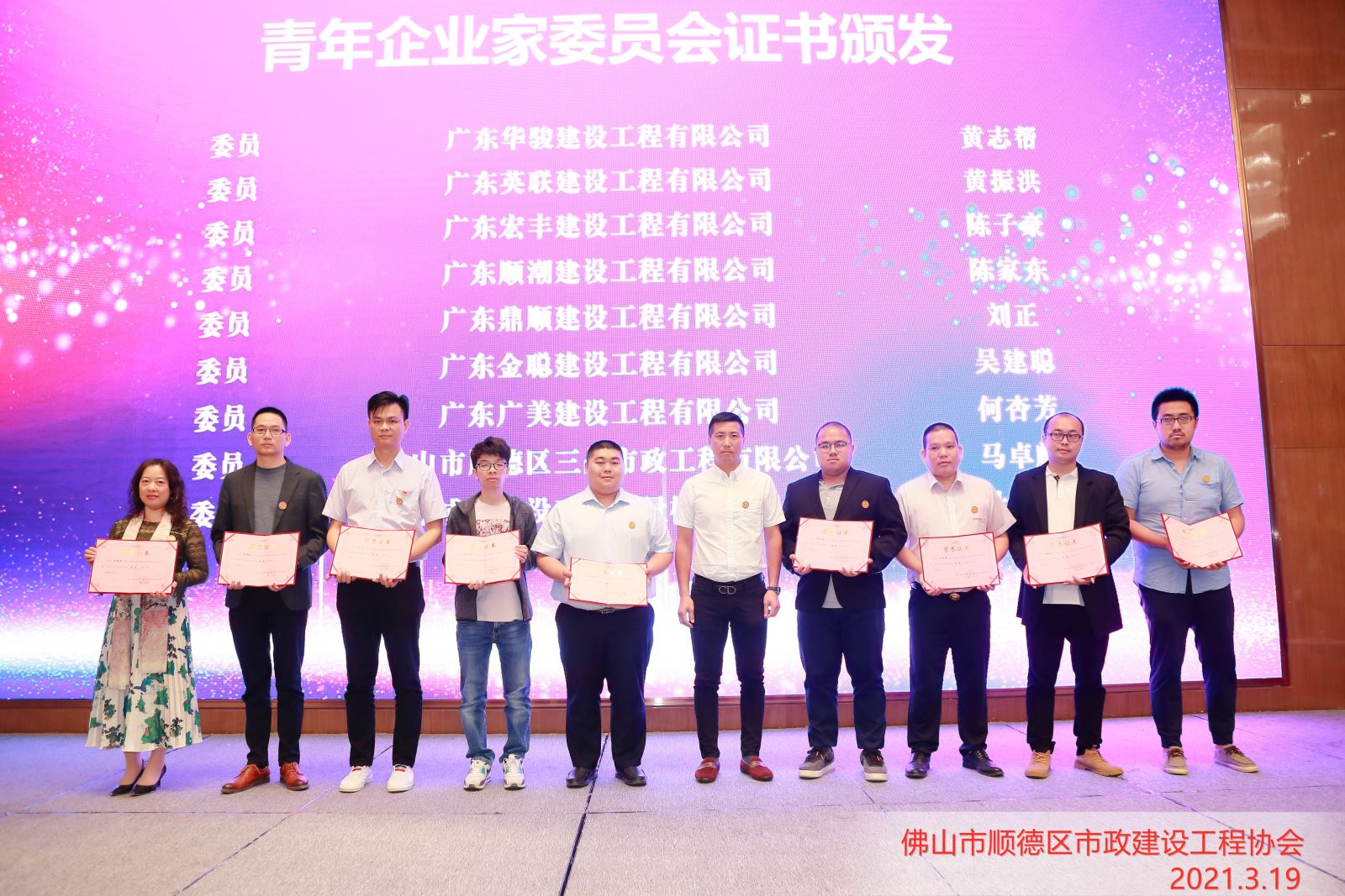 革命前辈创大业,时代新秀绘宏图。为更好地引领市政建设行业青年企业家开展理想信念教育,进一步增强青年企业家的活力和凝聚力,聚集行业青年企业家的聪明才智共谋行业发展大局。我会成立市政建设行业青年企业家委员会。协会常务副会长蔡必挺当选协会第一届青委会主任,30多位青委会成员现场接受证书颁发。蔡主任在致辞中表示,希望各位委员能够做好企业利益的代言人、政府发展经济的合作人和促进产业发展的带头人,为企业、政府和社会服务,为顺德经济建设和社会繁荣贡献更多力量。