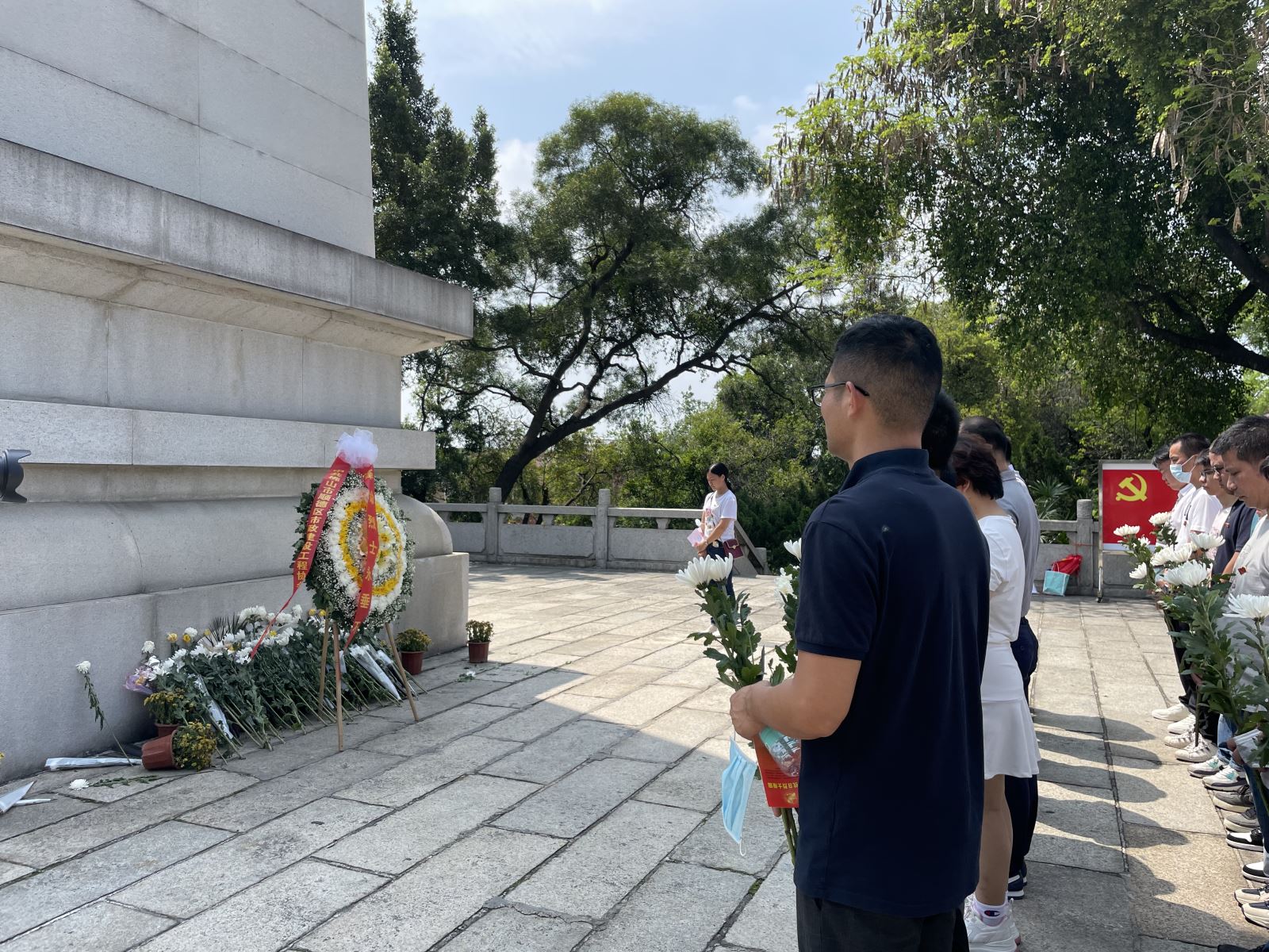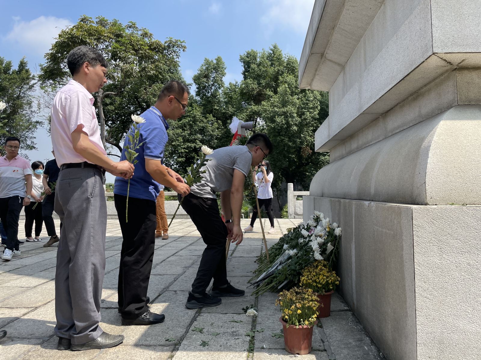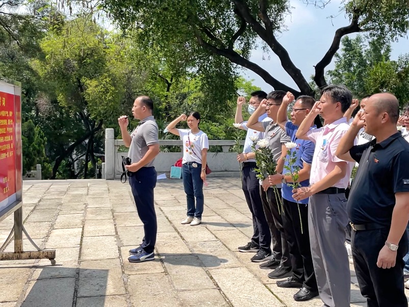 接着,队伍一行来到西海抗日烈士陵园开展“缅怀先烈 牢记历史”祭扫活动。奏唱国歌后,黄伟华会长和冯志贤书记为纪念碑敬献花圈整理挽联,全体党员同志手献鲜花,低头默哀,以示对革命先烈的崇高敬意。冯志贤书记带领全体党员重温入党誓词,进行宣誓。会长黄伟华和冯志贤书记分别讲话,号召全体党员要从党的百年历程中汲取智慧和力量,谨记历史,以史为镜,以史明志,赓续共产党人精神血脉,保持革命者的奋斗拼搏精神,肩负起维护国家主权和民族尊严初心使命,坚定不移地为中国特色社会主义建设奋勇前行。