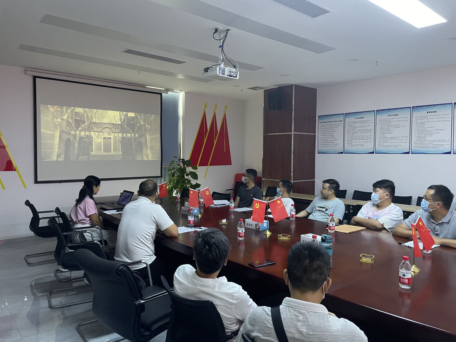 会上,首先由协会党支部书记冯志贤作党史学习教育,冯书记表示,各位党员、积极分子要把握正确的政治方向,充分发扬党的优良传统和作风,对党忠诚,知行合一,言行一致,表里如一,以优秀的政治品质和高尚的道德情操树立良好榜样,全心全意为人民服务。通过观看《百年恰是风华正茂》党史历程短片和协会党史学习墙知识,集体回顾了中国共产党一百年的风雨兼程,从中国波澜壮阔的发展历程中汲取奋进力量,激发昂扬斗志,厚植爱国主义情怀,坚定理想信念,用党史学习教育夯实党员先锋的理想信念。